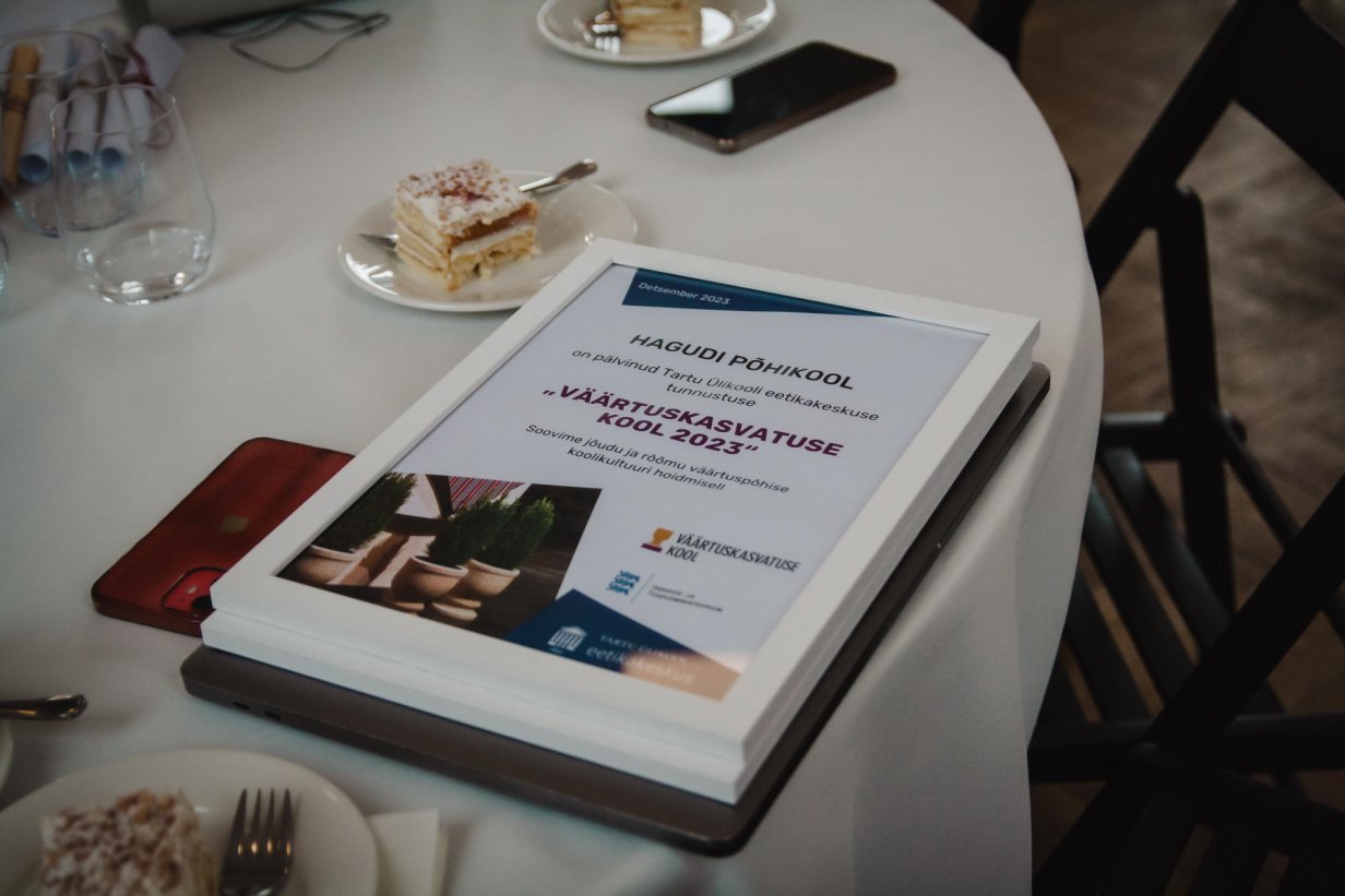 Juba viieteistkümnendat korda tunnustas Tartu Ülikooli eetikakeskus koole ja lasteaedu eeskujuliku töö eest väärtuskasvatuse edendamisel. Kõrgeima tunnustuse, rändauhinna ja 2023. a väärtuskasvatuse kooli tiitli pälvis Hagudi Põhikool.